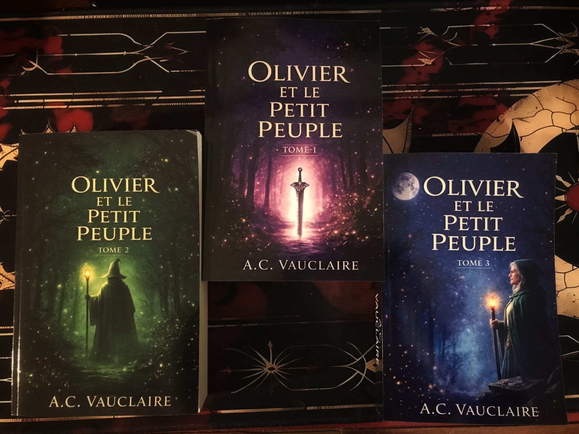 Une trilogie de fantasy historique publiée en auto-édition sur Amazon sous le nom A.C. Vauclaire, « Olivier et le Petit Peuple » :